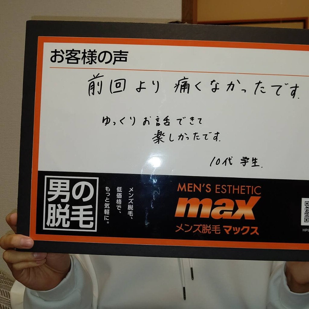 VIOとひげが痛かった。それ以外はリラックスしてできました。